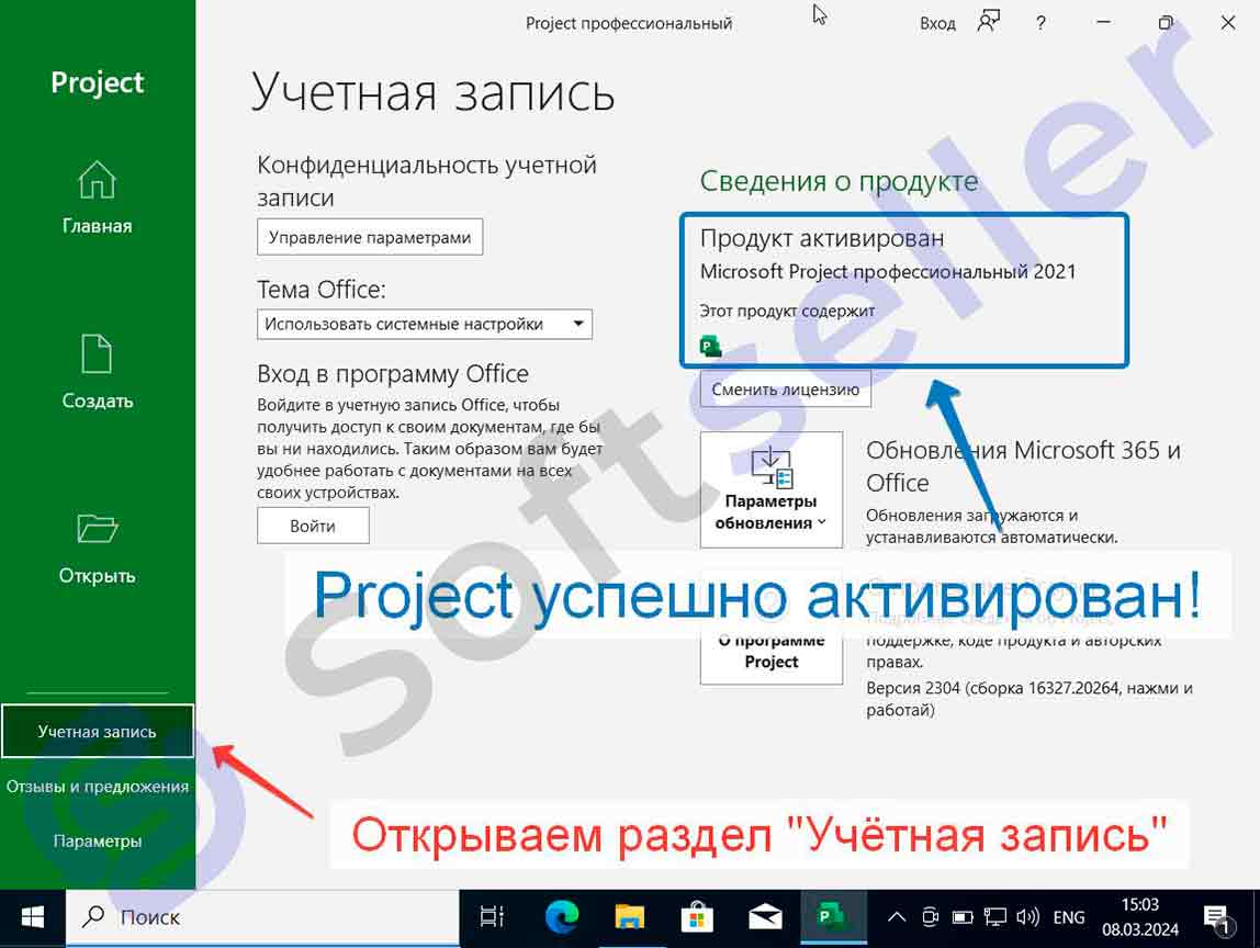 - Если ваш ключ с привязкой к учётной записи, то воспользуйтесь другой инструкцией по ссылке — Активация Microsoft Office с привязкой.